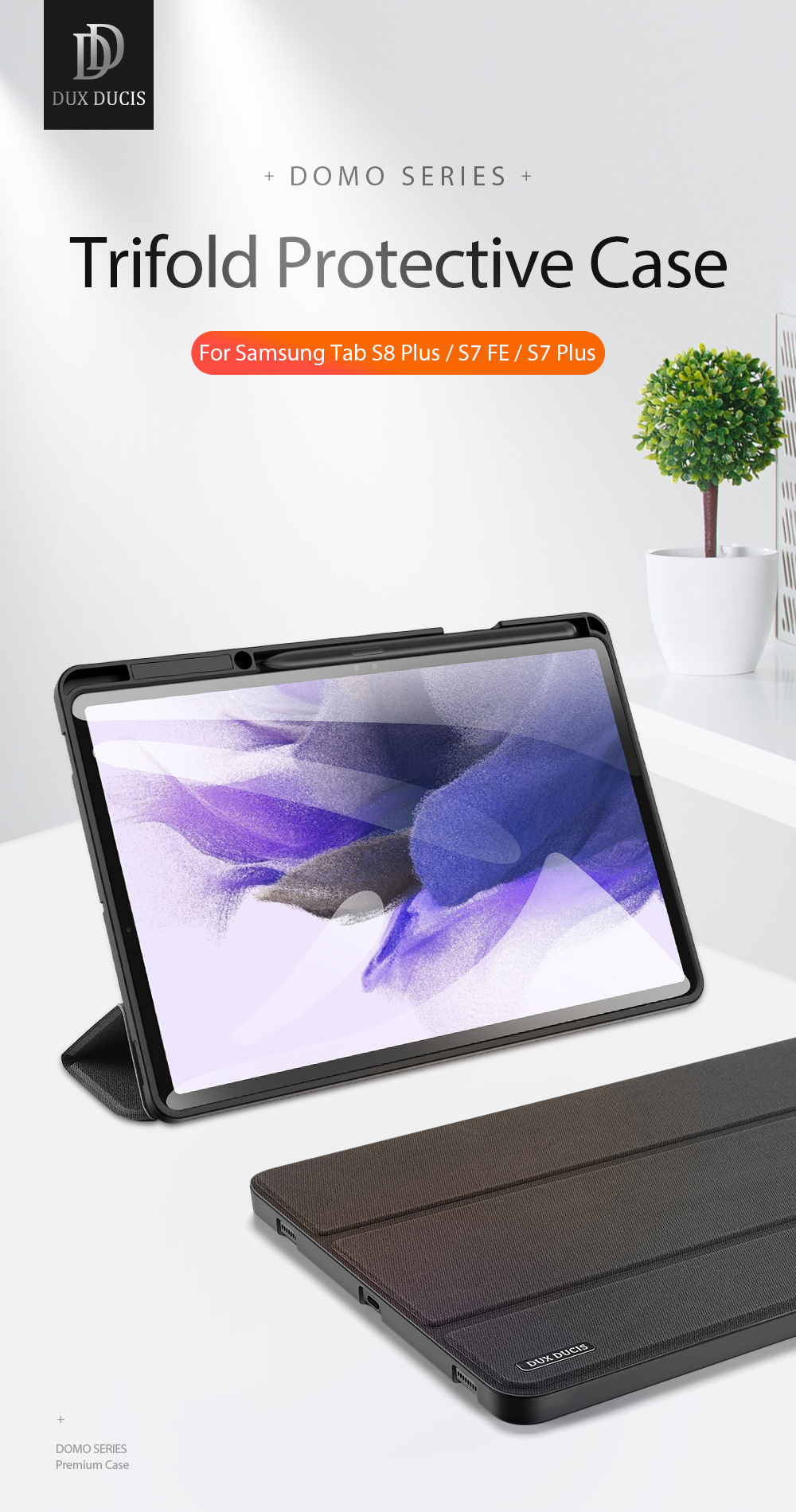 Giới thiệu về sản phẩm Bao da Samsung Tab S7 Plus/ S7 FE/ S8 Plus 12.4" DUX DUCIS DOMO Series Lưng Dẻo Vải Jean Khay Bút