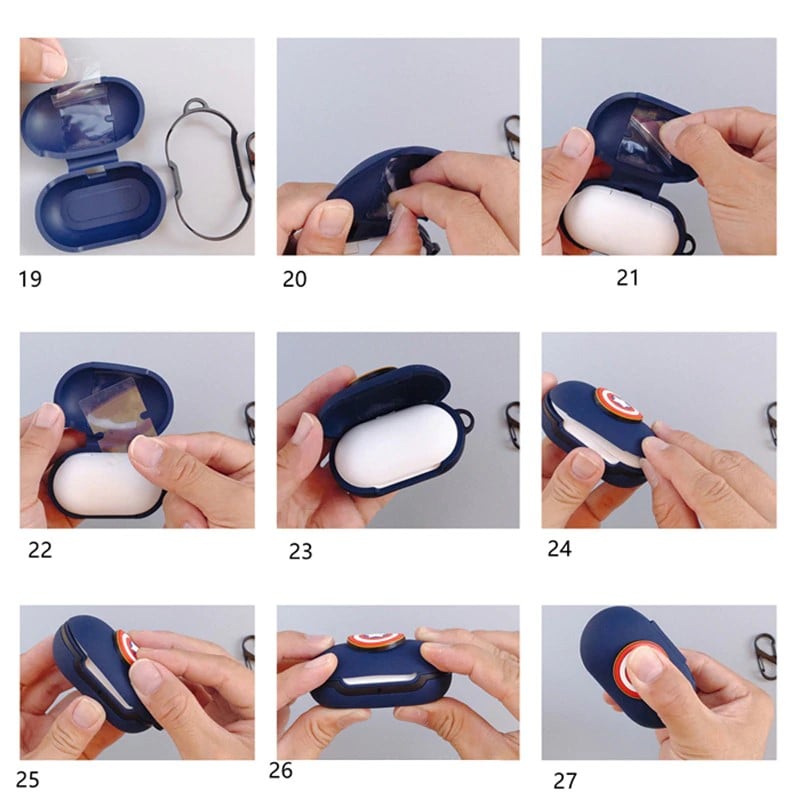 + Lắp phần đáy vào trước, canh chỉnh sao cho mép của ốp ngang với mép của Buds khi mở nắp (lúc này phần bụng dưới dáy sẽ sát đáy Buds, ko bị rỗng thụng). Sau đó lột keo ở phần nắp ốp dán vào Buds, đóng nắp Buds lại và miết mạnh nhìu lần cho keo bám dính vào nắp.