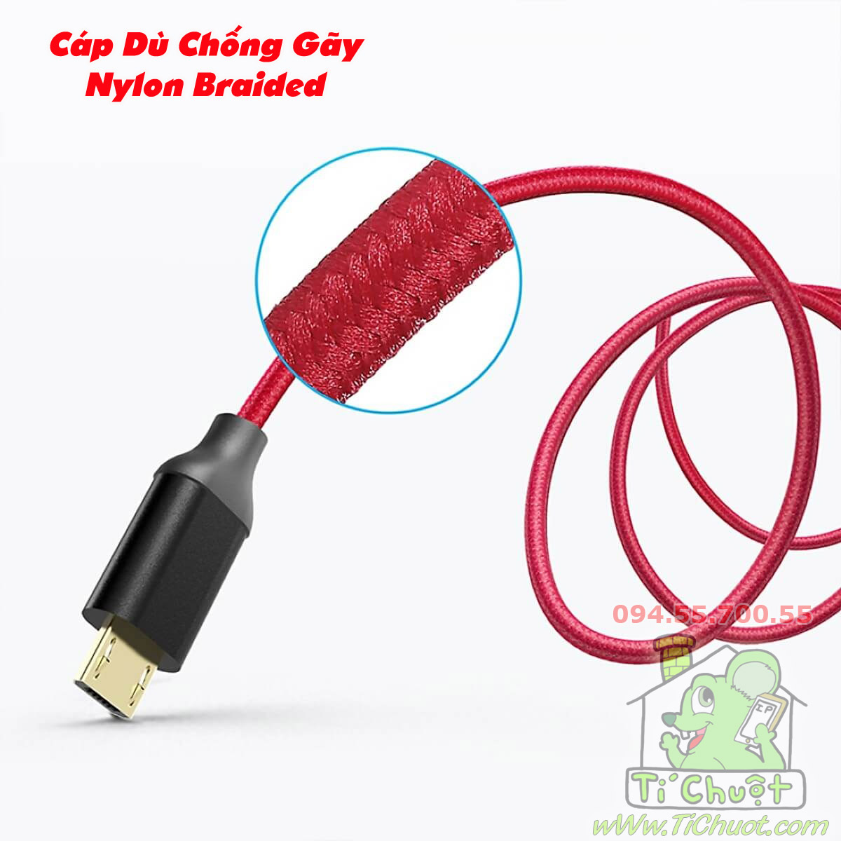 ✔️ Kim loại phần đầu cáp được mạ vàng nhìn sang trọng & nổi bật với dây cáp màu đỏ.