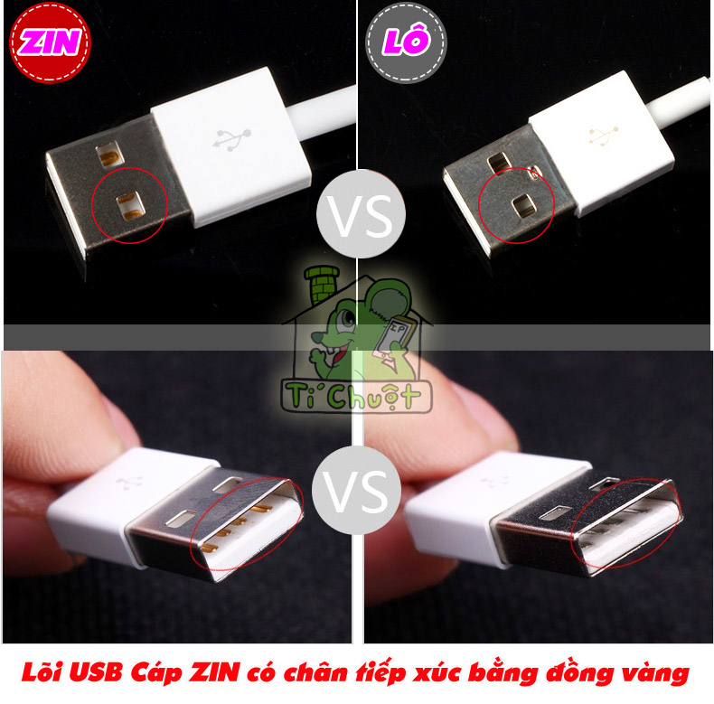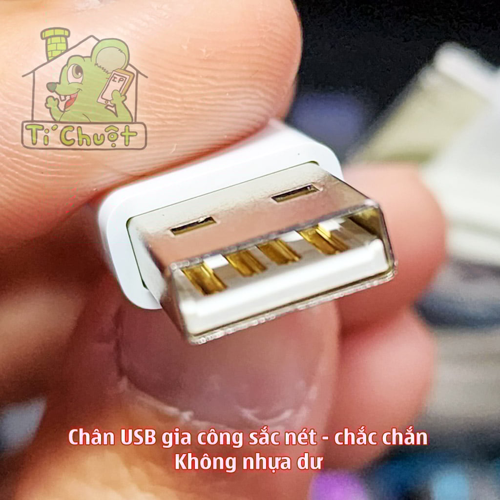 ✔️ Chân tiếp xúc cắm đầu USB bằng đồng màu vàng dẫn điện tốt (cáp lô bằng nhôm màu trắng)