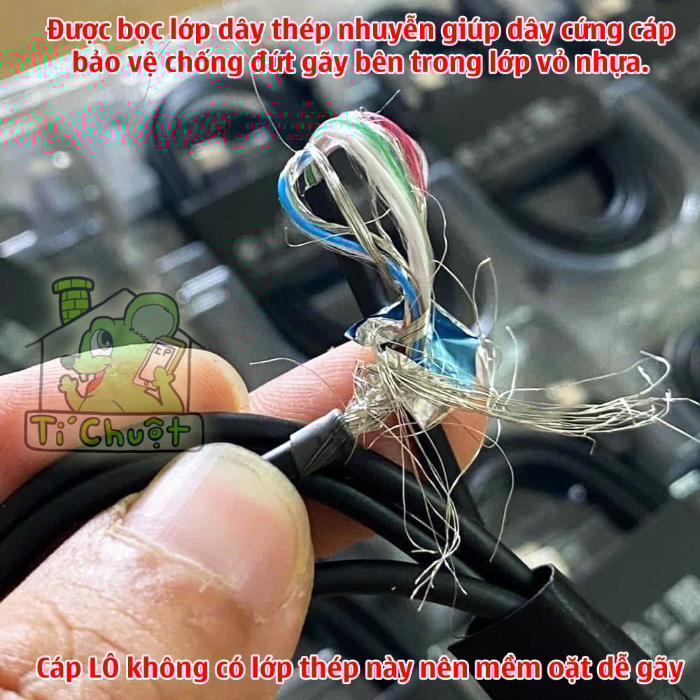✔️ Cáp ZIN có bọc lớp dây thép chống gãy bên trong lớp vỏ cao su, cho cảm giác cứng cáp, không mềm oặt như cáp LÔ 👉 bung seal ra xài tầm 1 tháng cáp mới mềm dẻo linh hoạt nhé.