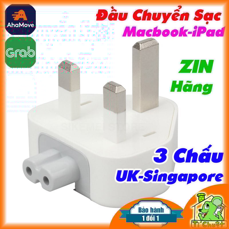 ⚡ Đầu Chuyển / Đầu Nối cục sạc iPhone-iPad-Macbook loại 3 chấu chuẩn ổ cắm các nước Singapore - Malaysia - Hong Kong - UAE - Anh Quốc UK - Ireland...