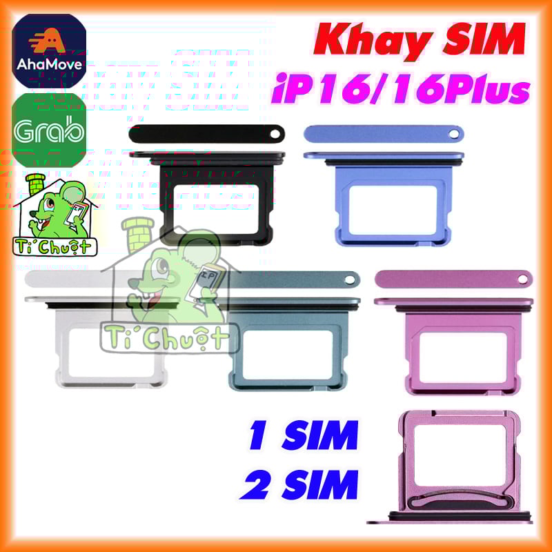 Khay Sim iPhone 16 / 16 PLUS bản 1 SIM/ 2 SIM ZIN có Ron Chống Nước & Lẫy Giữ Sim