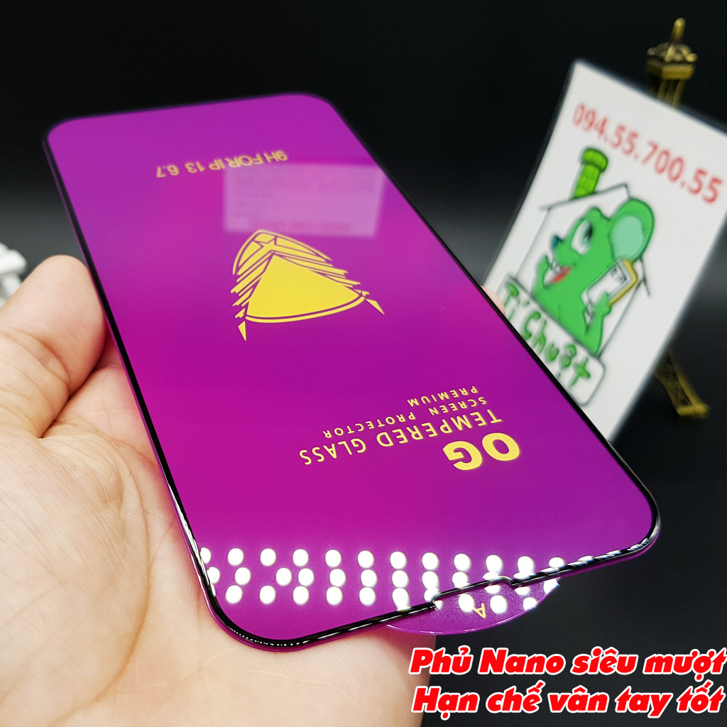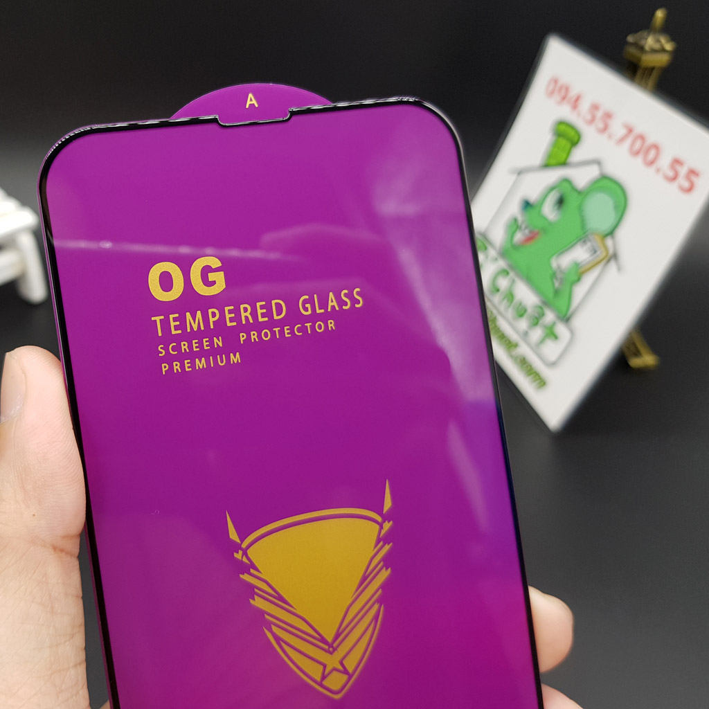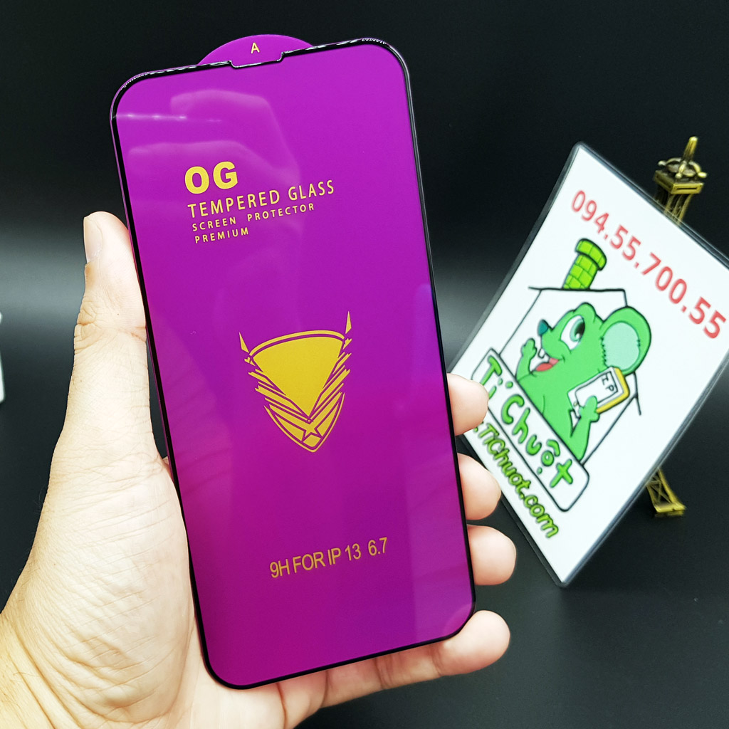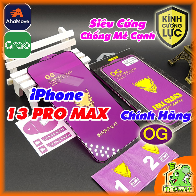 ⚡ Miếng dán Kính Cường Lực cho iPhone 13 Pro Max 6.7" Trong Suốt Phủ Nano Siêu Cứng 9H Chính hãng OG, Viền Kính Cứng Mài Cạnh 2.5D Chống Mẻ Cạnh, Full Màn Hình FULLBOX.