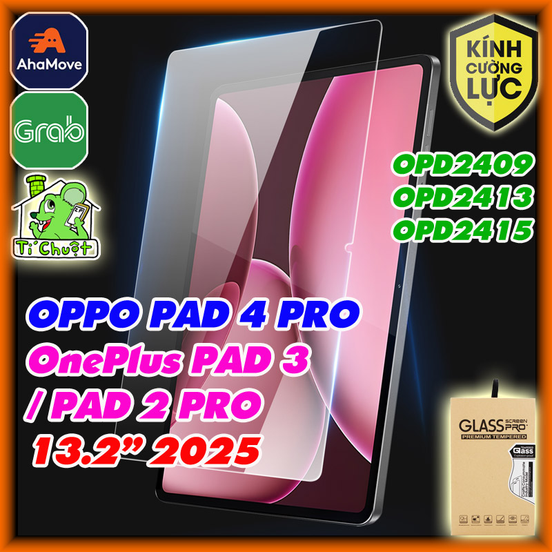 ⚡ Miếng Dán Kính Cường Lực OPPO PAD 4 PRO 13.2" 2025 (Mã model: OPD2409) - OnePlus PAD 3 13.2" 2025 (Mã Model OPD2415) - OnePlus PAD 2 PRO 13.2" 2025 (Mã Model OPD2413), dày 0.26mm, độ cứng 9H, chống va đập & trầy xước tốt.