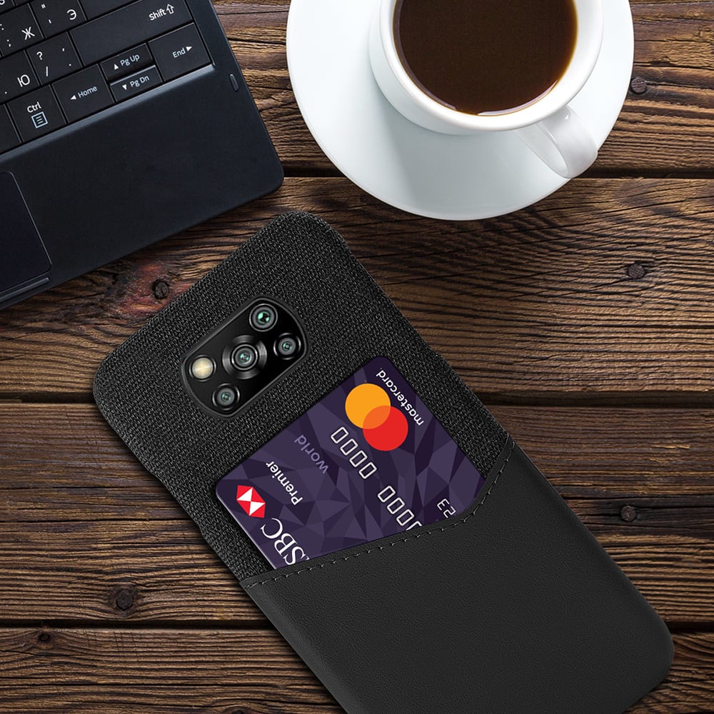 Giới thiệu về sản phẩm Ốp Lưng Xiaomi Poco X3 NFC Vải Fabric Phối Da Nhét Tiền Thẻ ATM