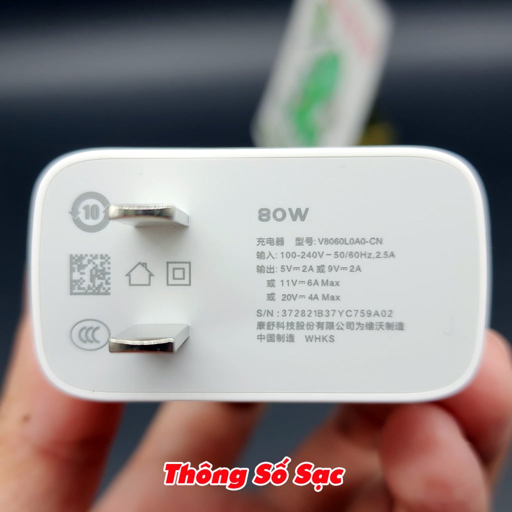 ✔️ Model Cốc Sạc: V8060L0A0 - CN. Thông Số Sạc : 5V-2A / 9V-2A / 11V-6A 66W / 20V-4A 8W Max.