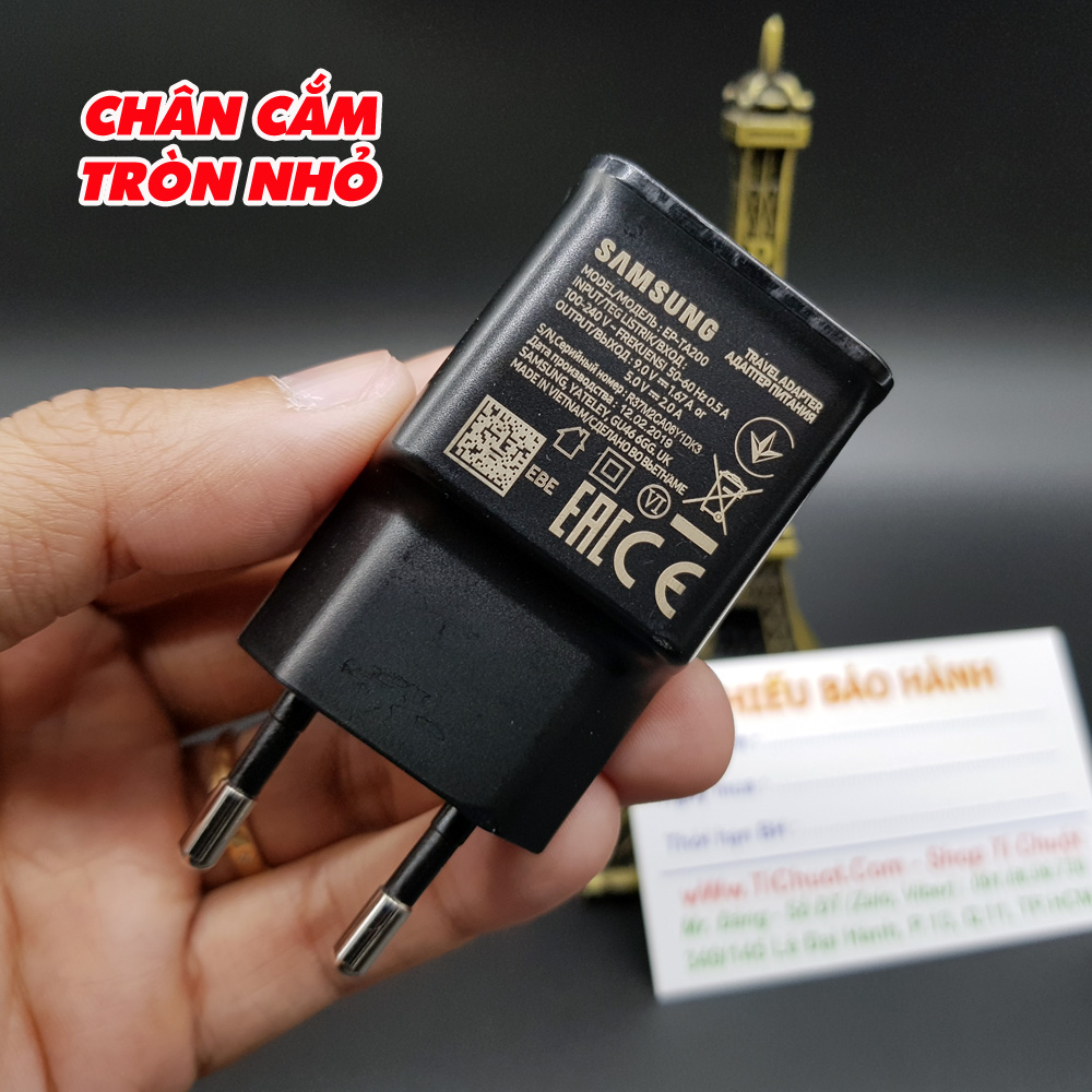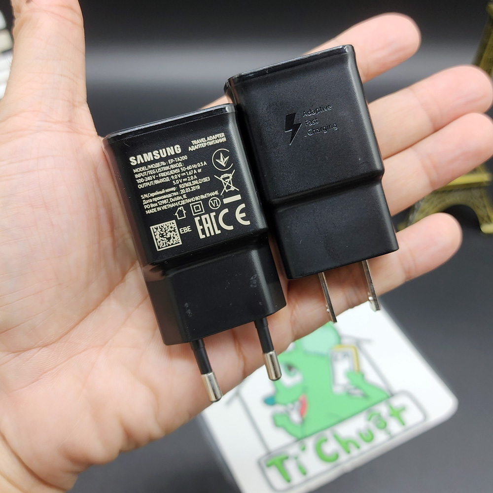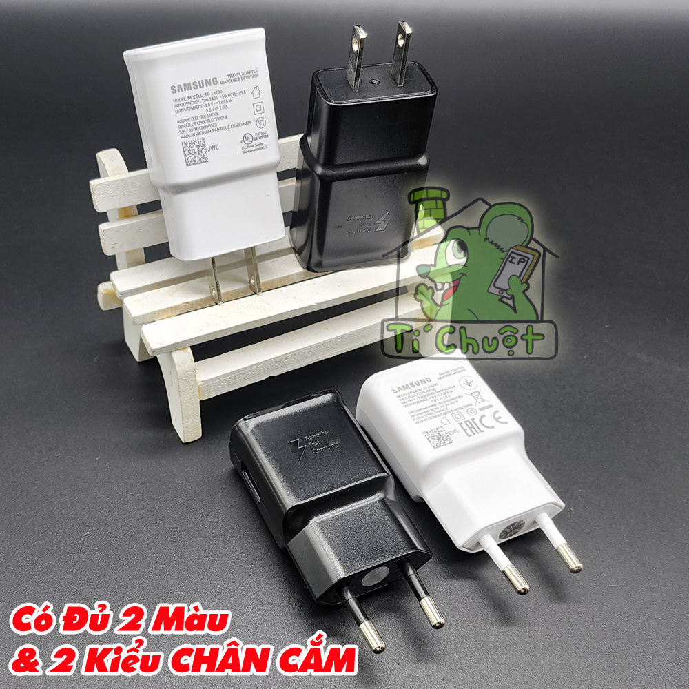 ✔️ Tùy theo thị trường bán máy mà Củ sạc có các chuẩn chân cắm khác nhau như : Bản Việt Nam/EU (Chân Tròn Nhỏ & Khum lại) - Bản Hàn Quốc (Chân Tròn To Song Song) - Bản Mỹ US (Chân Dẹt).